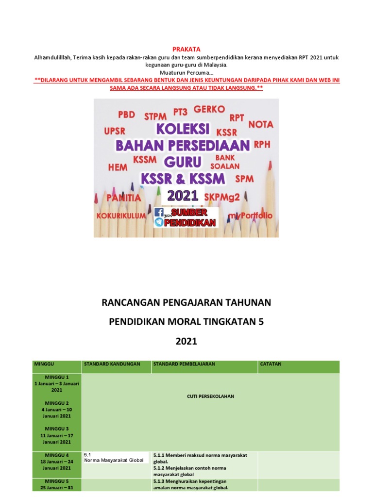 Rpt 2021 Pendidikan Moral Tingkatan 5 Kssm Sumberpendidikan Pdf